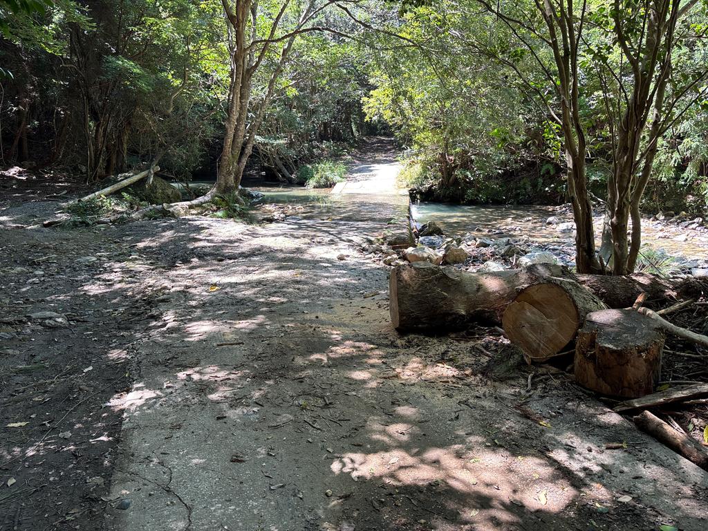 8/12前後の豪雨の影響で大木が林道を塞ぎ、渓流が溢れていました。対馬市の観光交流商工課の職員さんが、チェーンソーで倒木を処理してくれました。ありがとうございます!