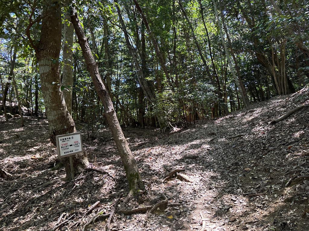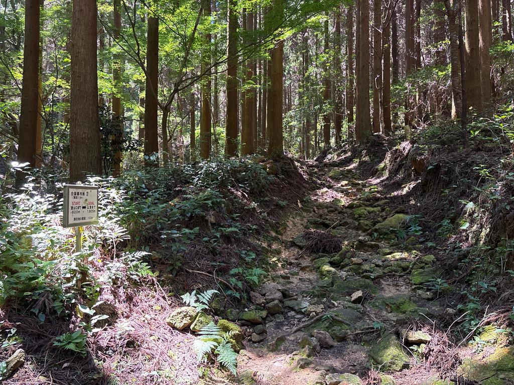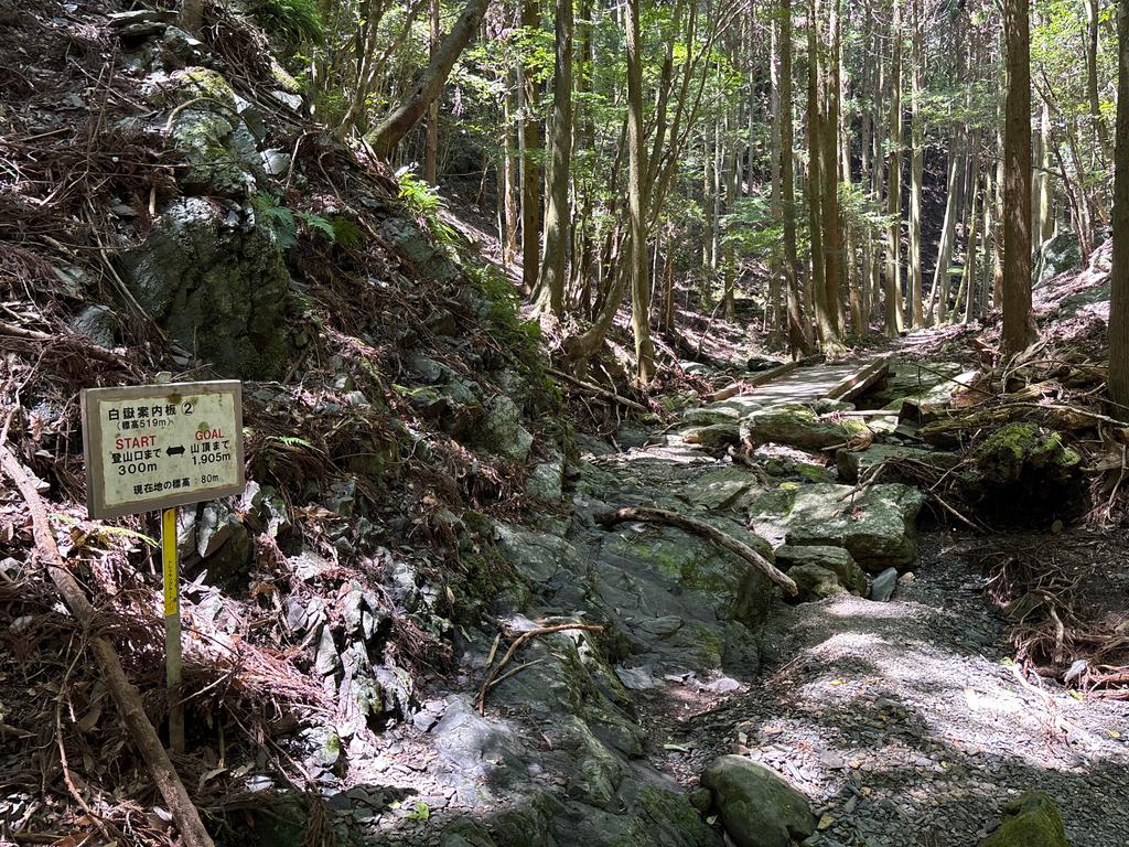 1500m地点(標高290m、山頂まで705m)。まもなく白嶽の山中鳥居です。