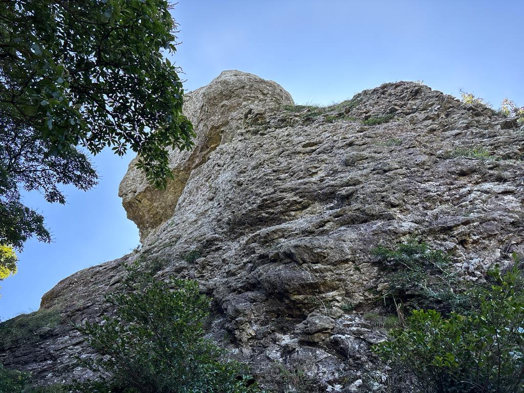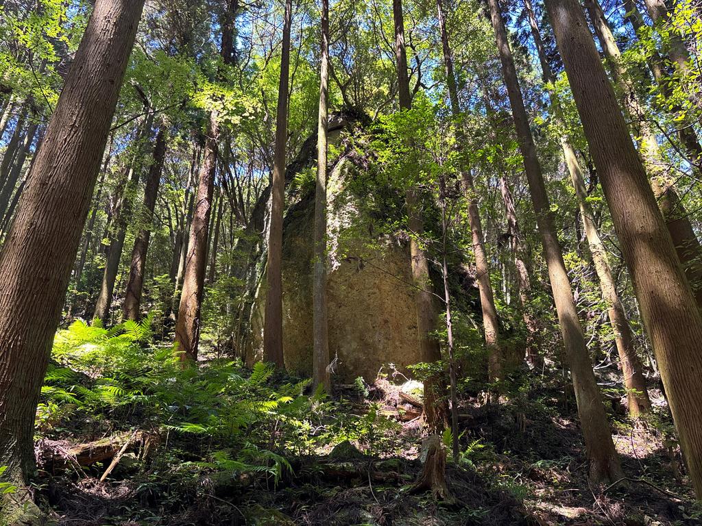 木立のなかに突如姿を現す巨石。岩上も小さな森のようになっており、通称「オームの岩」。