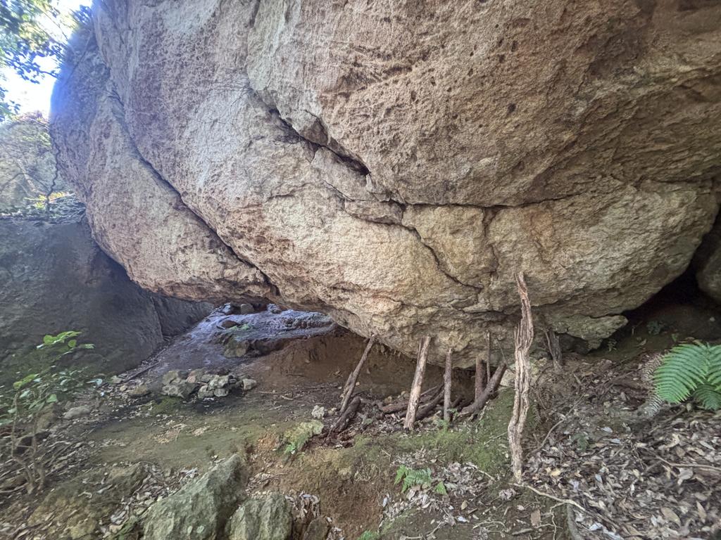 このつっかえ棒を外すと大岩が転がり落ちると伝えられており、熱心な信者が棒を追加していきます(うそ)。