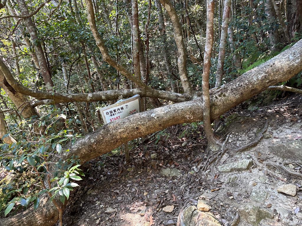白嶽の鳥居。ここから上はスダジイやアカガシなどの照葉樹林の本来の植生が残っています。