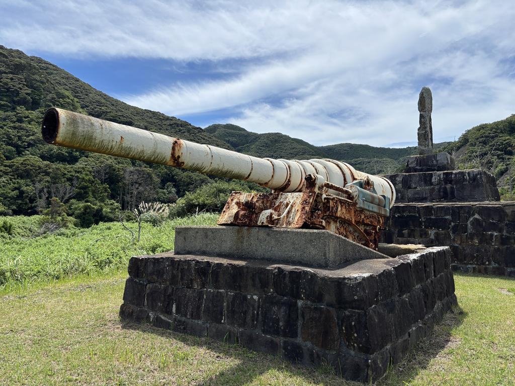 7/20(日) 上対馬町茂木浜の海水浴場横には、明治期の日露戦争時に沈んだロシア軍艦・アドミラル・ナヒモフ号の大砲が設置されています。