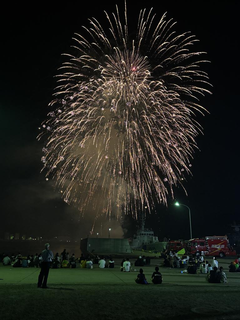 8/2(土)~3(日) 対馬最大のお祭りで、朝鮮通信使行列なども行われます。写真は花火大会の様子。