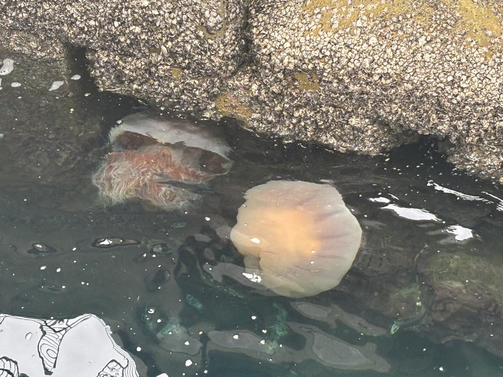 8/8(金) 厳原港にエチゼンクラゲが流れ着いていました。傘の直径は60~70cmほどの巨大クラゲで、シーカヤックツアー中に遭遇するとビックリします。