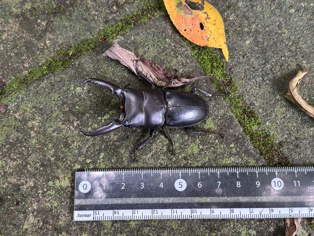 ときどき姿を現す、ツシマヒラタクワガタ。