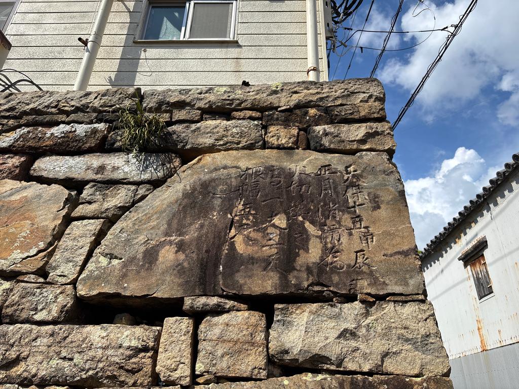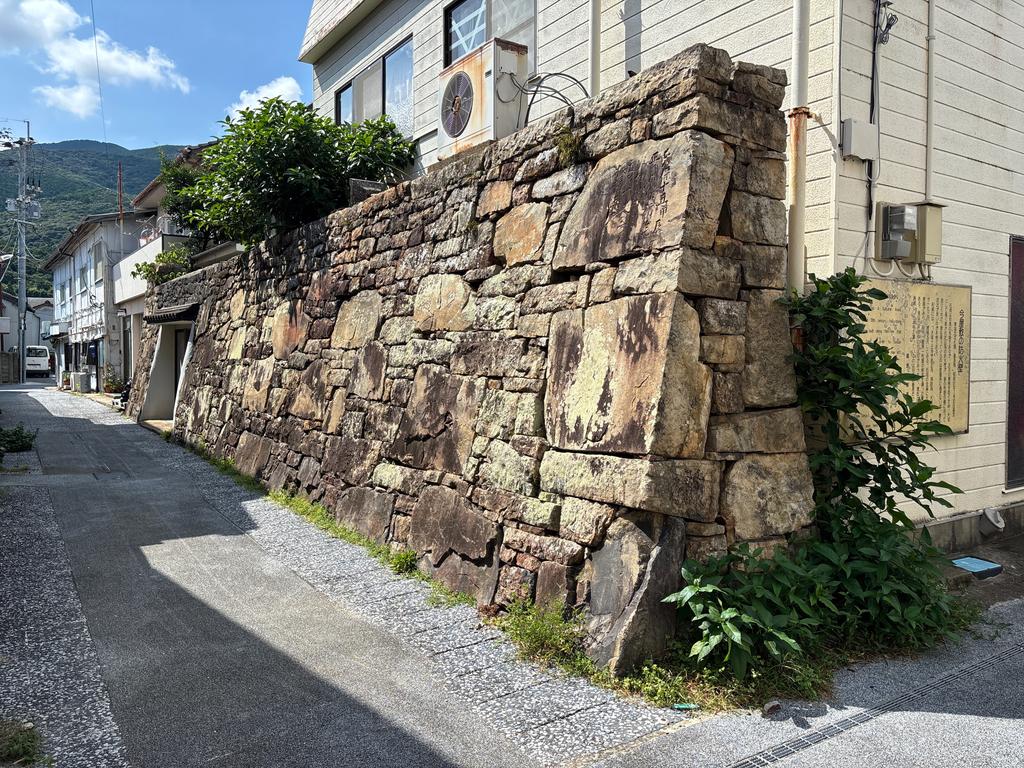 今年度、ガラにもなく文化財巡視(6つくらい?)という仕事を引き受け、白嶽や龍良山などを歩いていますが、城下町の石垣「今屋敷の防火壁」や江戸時代の船着場「対馬藩お船江(ふなえ)跡」なども含まれています。