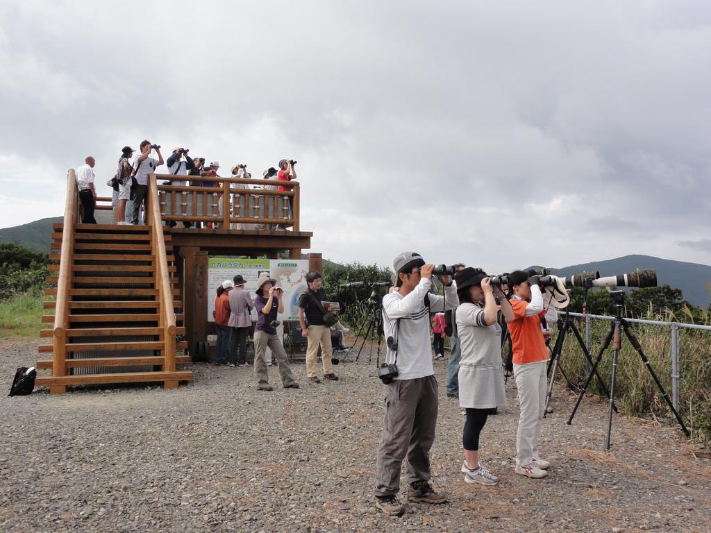 30年前、数多くのアカハラダカの渡りが確認されたことをきっかけに有志による観察が始まり、現在は、2000年にできた360度見渡せる展望所で、9月1日から9月30日までの期間、天候不良による観察不能日以外は毎日観察をおこなっています。