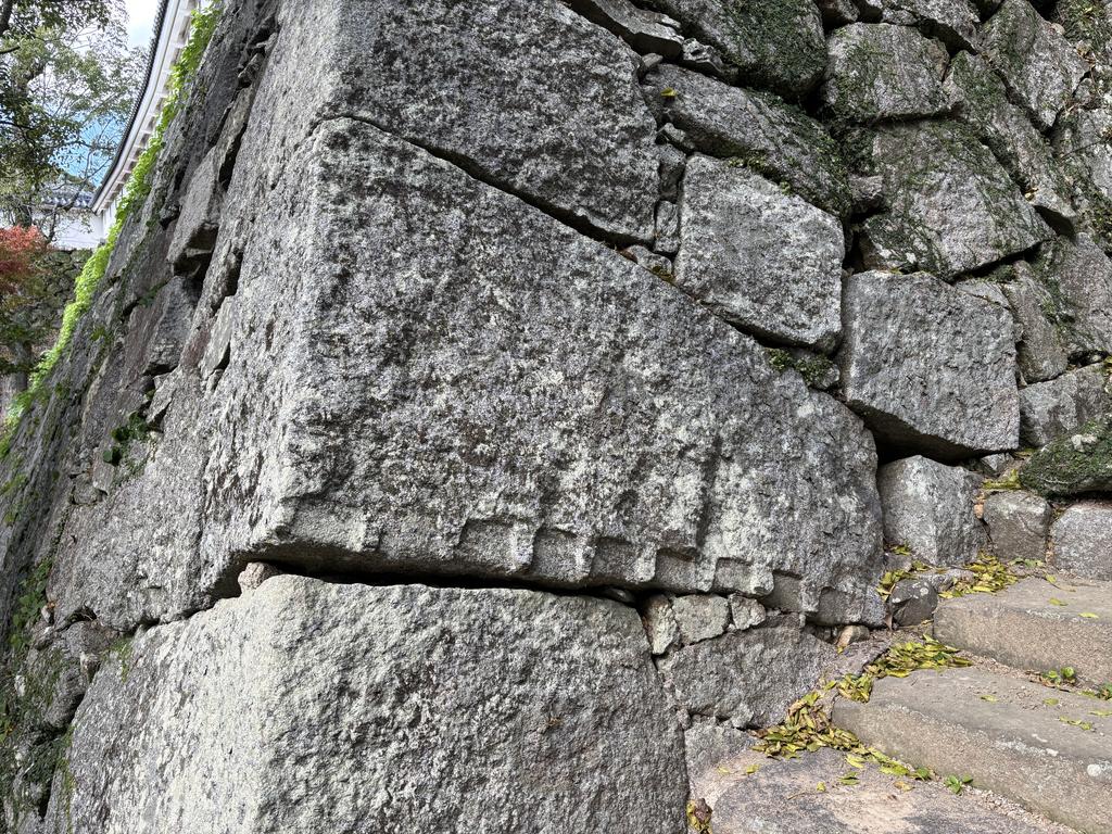 石垣には石を割るための「矢穴」の跡がくっきり。