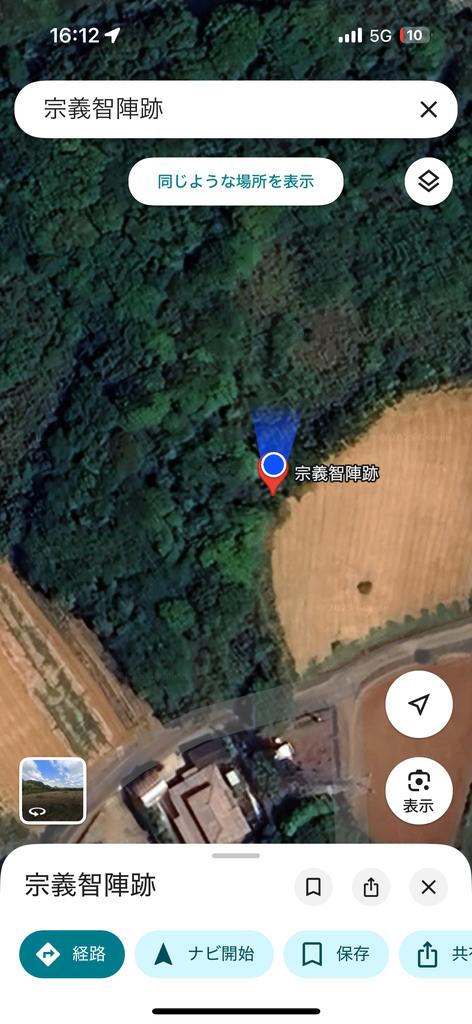 Googleマップで見つけた、初代対馬藩主・宗義智(そうよしとし)公の陣跡。