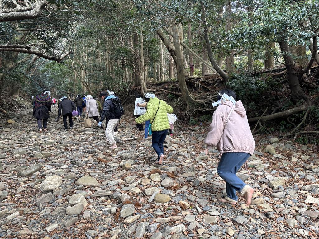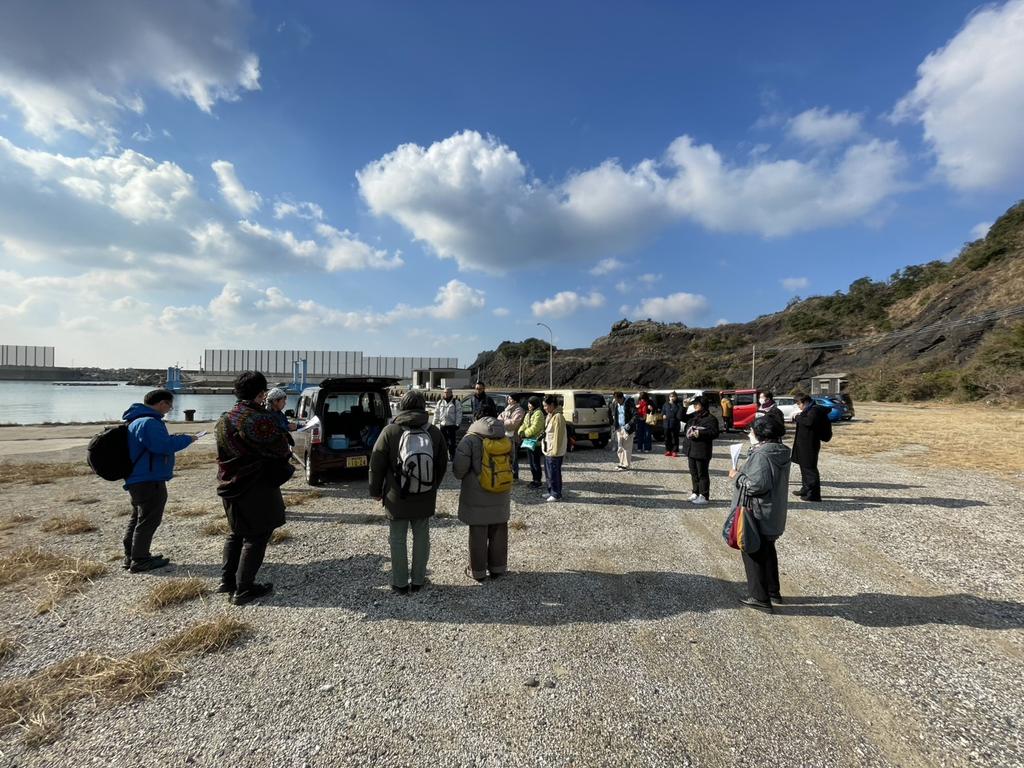 集落内の道路は狭いので、漁港に集合し、徒歩で雷命神社に向かいました。