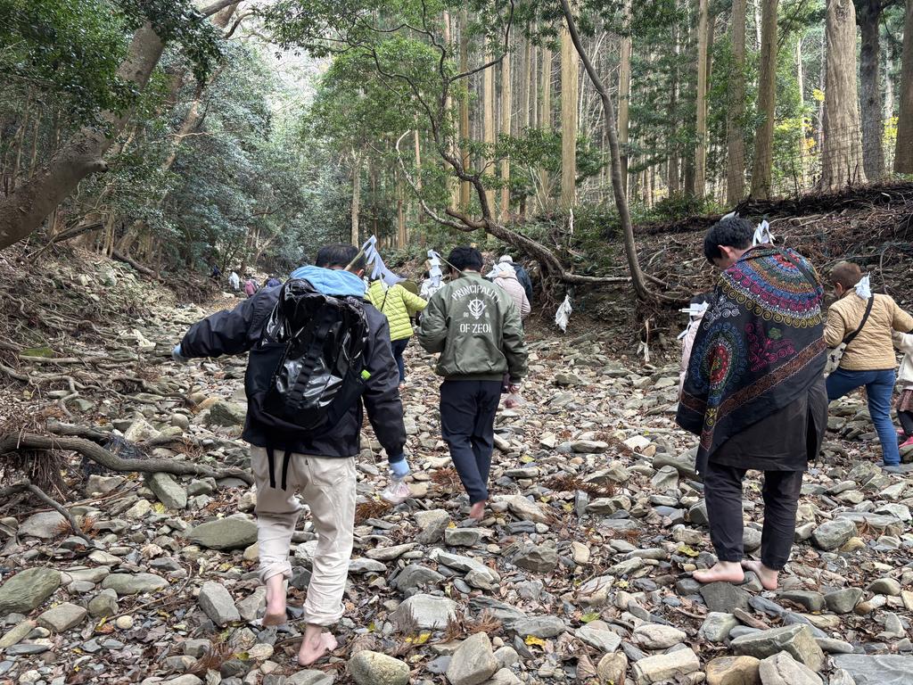 そこで靴を脱ぎ、冷たい川底を裸足でさらに上流へ。