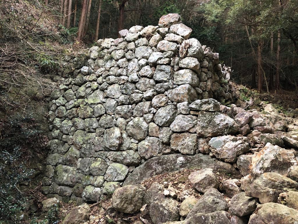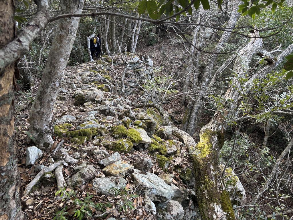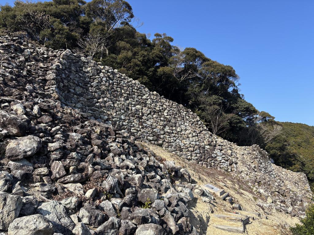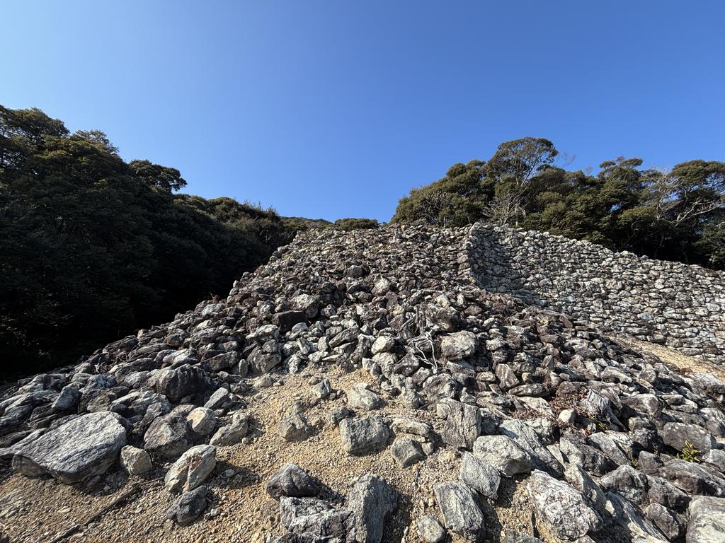 標高200mを超え、外敵の侵入はほぼ想定できない断崖絶壁にも石が積まれています。