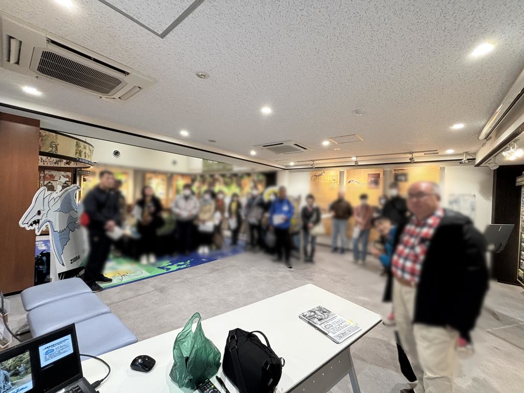 まずは「ふれあい処つしま」で狛犬ミニ講座(15分)を開催し、バスでフィールドへ。