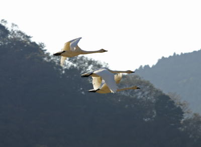 こんばんは。オシドリの飛翔です。霊峰白岳をバックに飛んでいます。ちょっと黒くなりましたが、雰囲気はでたかな、自分ではそう思っています。