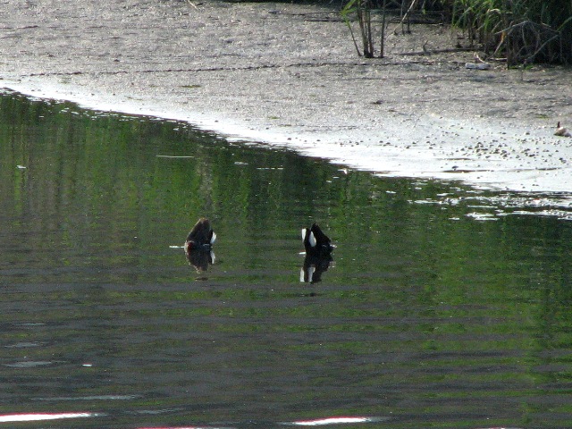 正ちゃん、今日はお電話ありがとうございました。どちらもライファーで感激いたしました。昨夜は鳥を撮る側の楽しい話で、今日のヨシガモ達は撮られる側の楽しい話をひっそりとしているようですね。K口さん、タゲリの後頭部のチャームポイントは、雨にも風にも負けずかわいいですね anyanさん、トモエガモは、とってもかわいい目をしていたんですね。私の画像ではかわい目がわかりにくかったです。通信使さん、噂のヒメウの黒羽は光沢があり美しいですね。