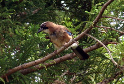 自宅裏の木に留まって「ネェ、どうしてアタシを撮らないの?」と言いたそうなジョビコがいました。