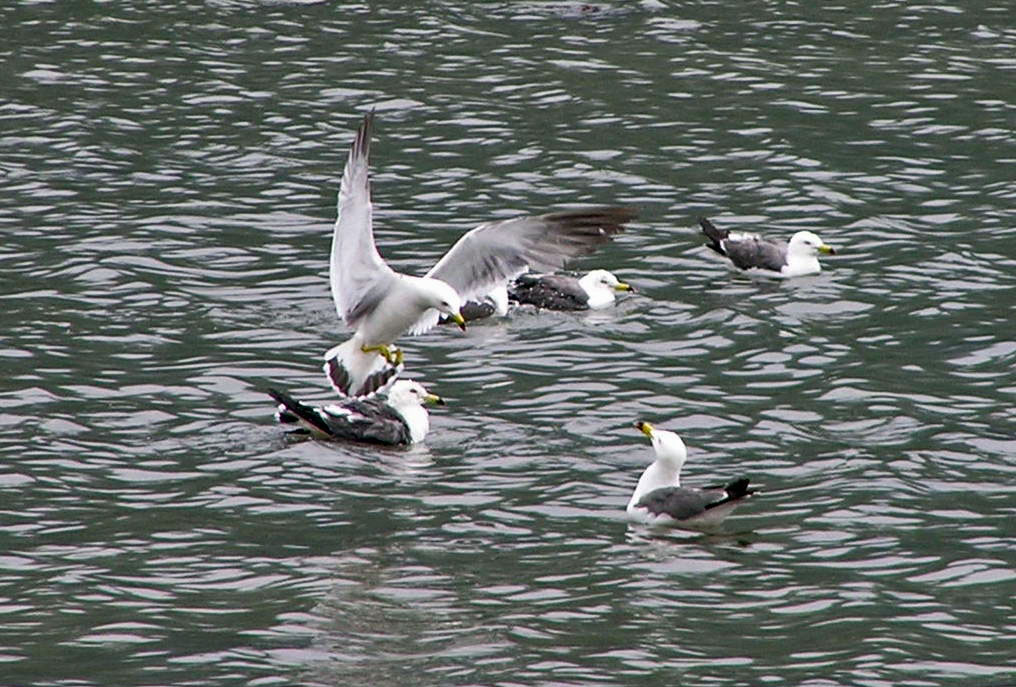 こんばんは。阿連から加志を一回りしてきました。阿連の方は異常がありませんでしたが、加志の川にウミネコが50〜60位いました。その中に一羽だけ腹の方に油が付いたのがいました。外海までは出ていかないのではないかと思います。他にみあたりません。どこで付いたのかわかりません。元気に飛び回っていました。
