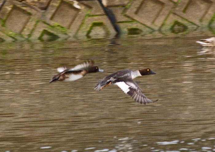 抜けたと思っていたホオジロガモはいつもの場所にいました。いつも一緒にいたキンクロの雌は本命の雄が現れたのでそちらとべったりのようです。