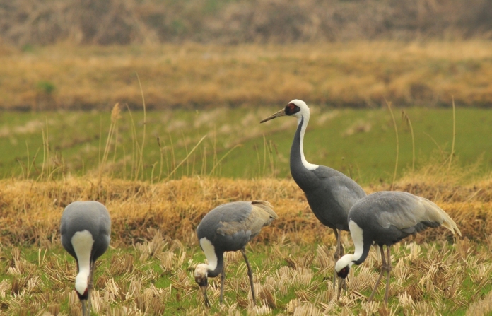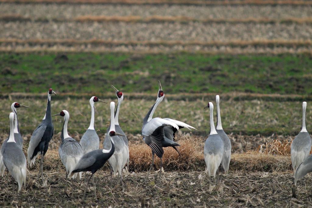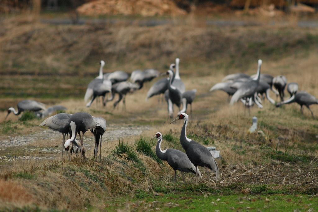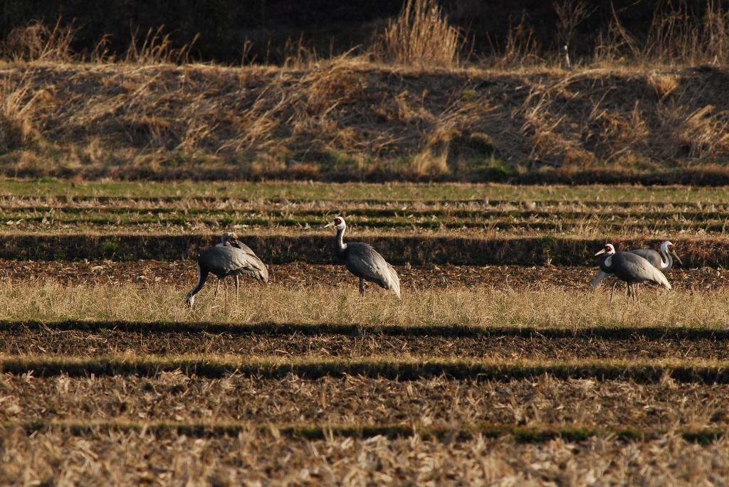 anyanさん、日高君、昨日はお疲れ様でした。今日もマナヅルが5羽いました。タイムリミットがありましたので、飛び立つところは見れませんでした。