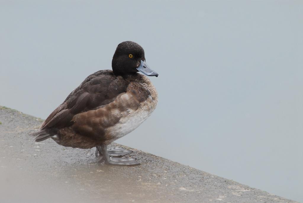 今日も雨でしたね。キンクロハジロの雌が陸に上がってました。相棒のホオジロガモは先日、海の方で目撃したので、抜けてしまったかもしれません。