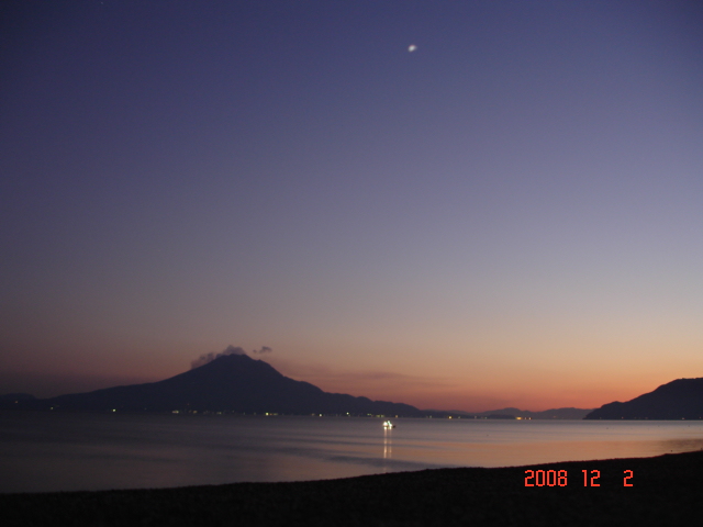 せろりんさん、夕暮れの錦江湾、きれいですね。奥に見える山は桜島でしょうか?こんな光景は確かに癒されるでしょうね。