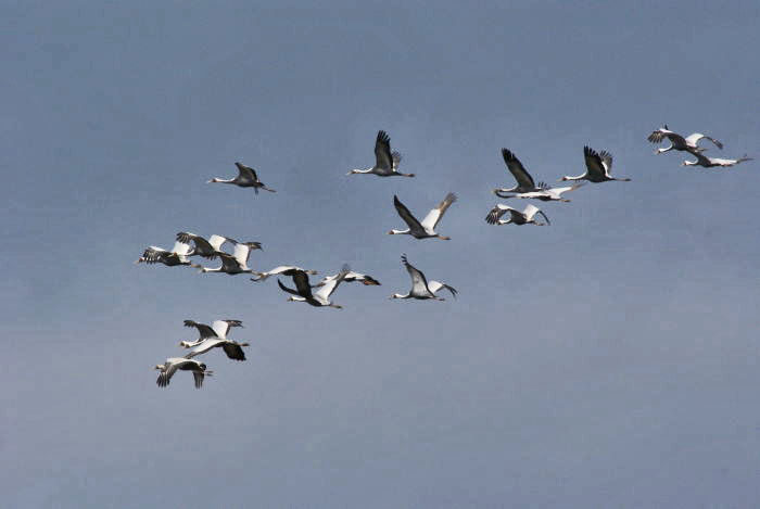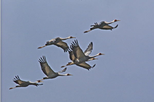 K口さん、ハイタカの顔かわいいですね。チョウゲンボウは慌ててどちらへ行ったのでしょうか。正ちゃん、青空に舞う鶴は美しいですね。私のマナヅルはとってもお腹がすいている3羽です。