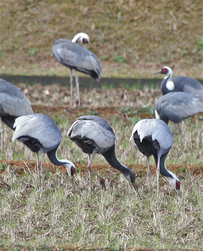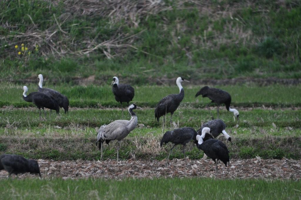 塩田の山側にマナヅルの9羽の群れがいました。後で聞いたのですが、田ノ浜にも3羽いたそうです。合わせて12羽!!