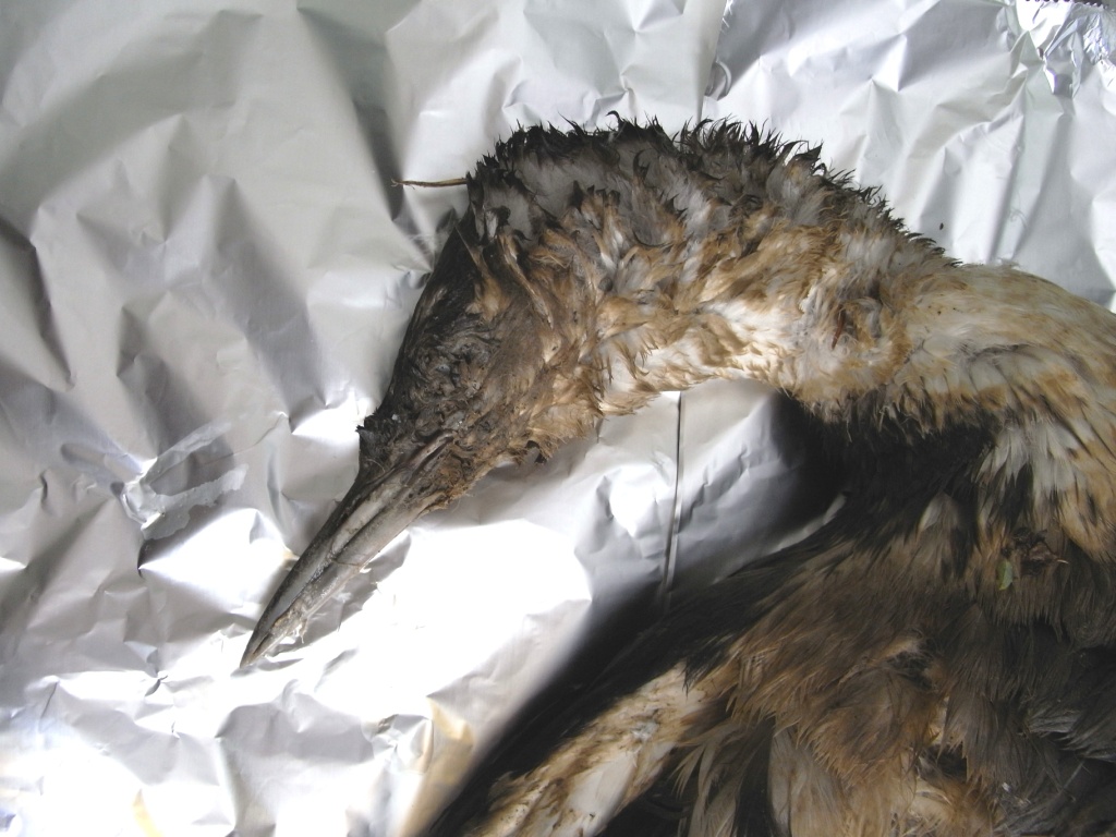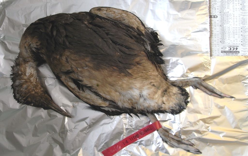 こちらにも汚染されたシロエリオオハムが上陸してました。油も全身にべっとりと付いていて痛々しいです。