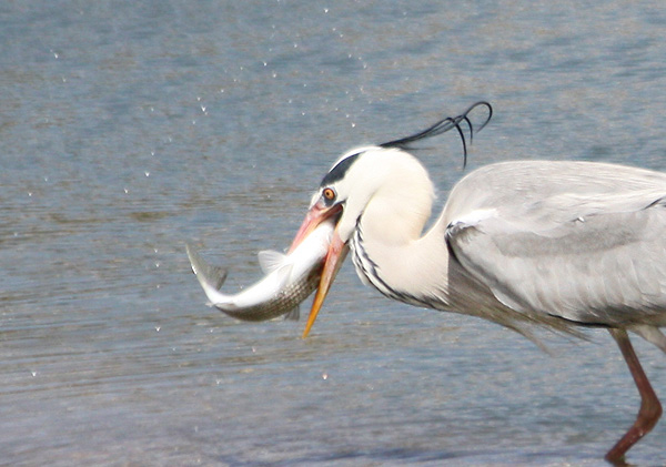 こんばんは。ウミアイサの狩りに出会いました。大勢で浜辺に魚を追いつめていました。浜に上がった魚も上陸して食べていました。それはにぎやかなことでした。