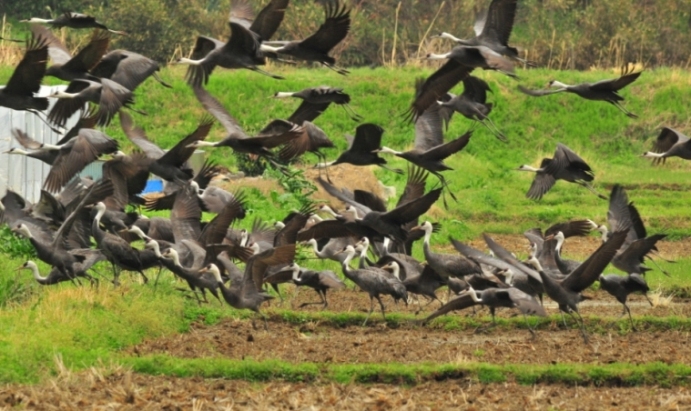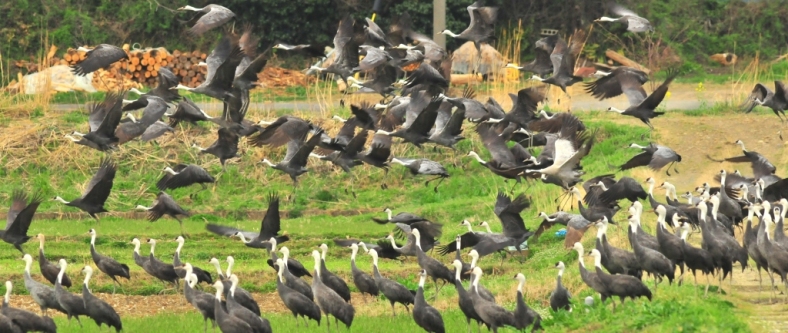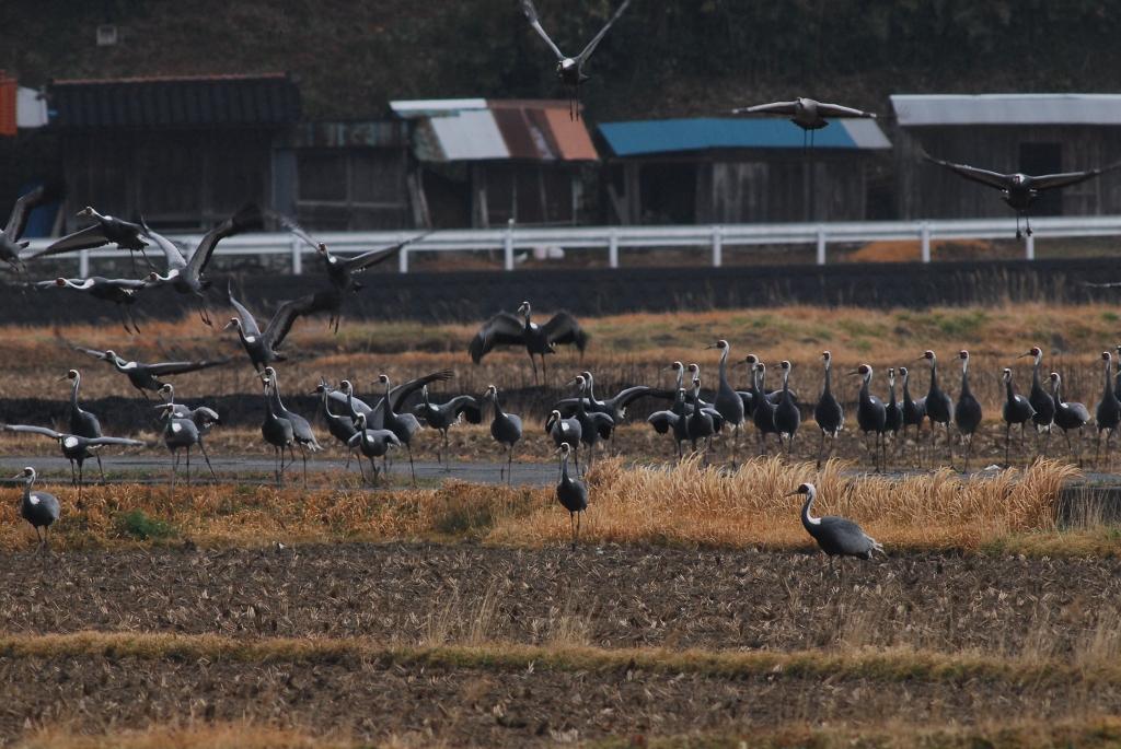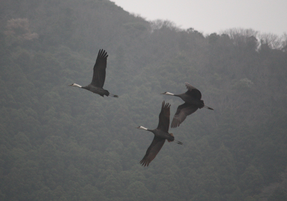 今日は朝から雨でした。下の方にはマナヅルが降りたようですね。夕方にはこちらにも140羽ほどのマナヅルが降りました。明日が楽しみですね。