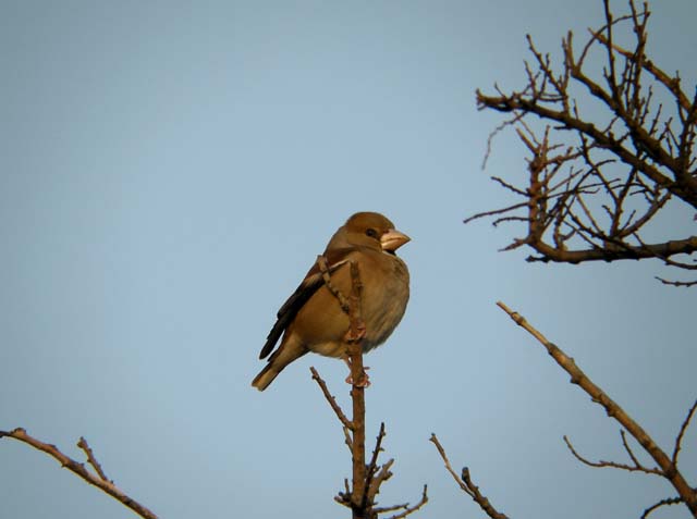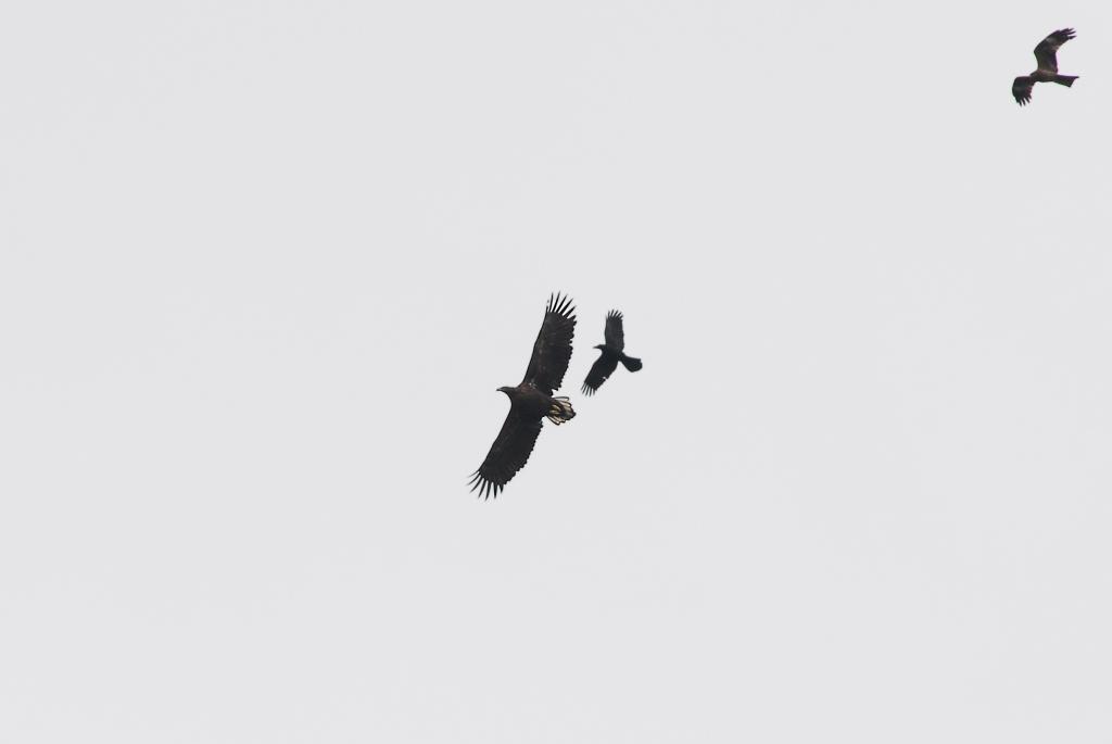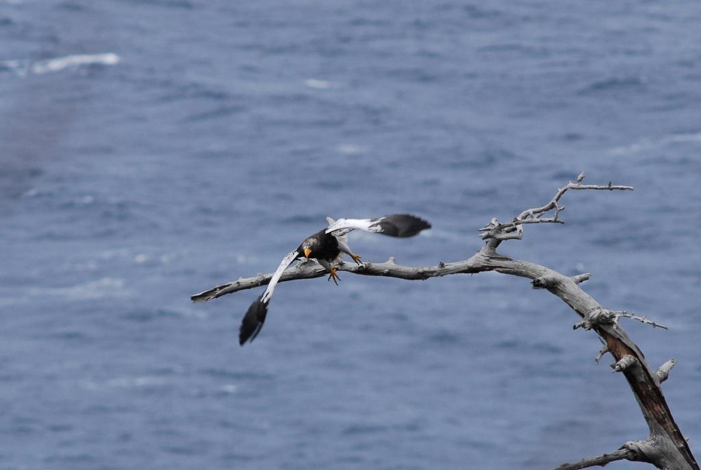 午後からは天候も回復したのでオオワシを見に行きました。いつものポイントにつくと枯れ松に止まっていましたので、また登ってみました。しかし、到着すると姿がありません。そういえば、途中でカラスがギャーギャー行ってたような…その後もことごとく空振り…とうとうオオワシにもオジロワシも出会えませんでした。