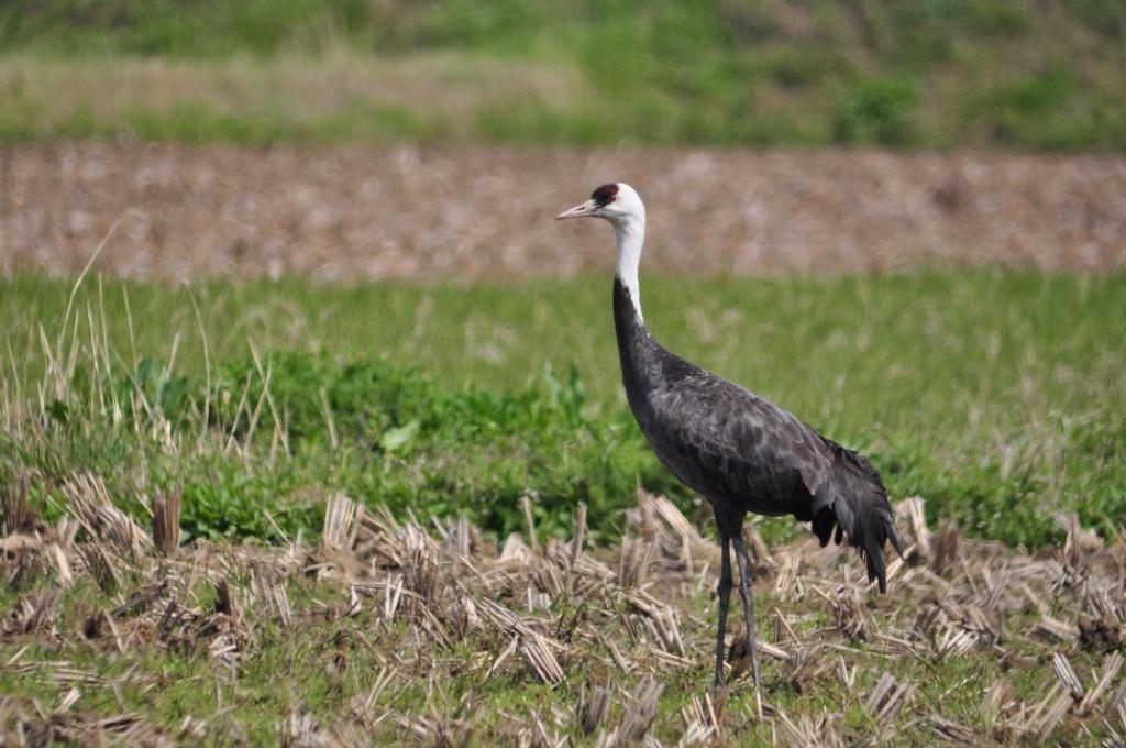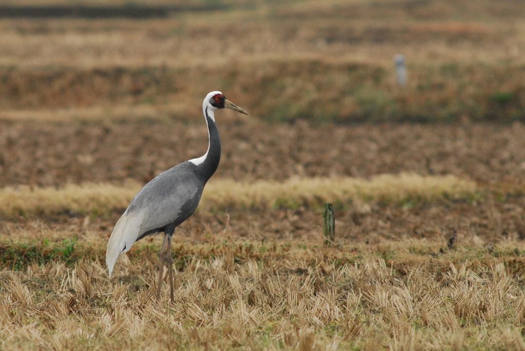 佐護には昨日の居残りのマナヅル1個体が田んぼで羽を休めていました。
