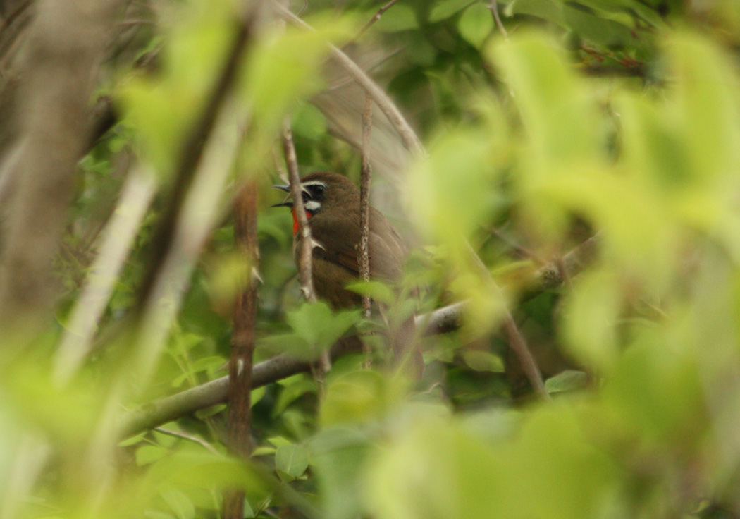 ツグミだけでは寂しいので先日撮影した枝かぶりのコホオアカでも張っておきます。