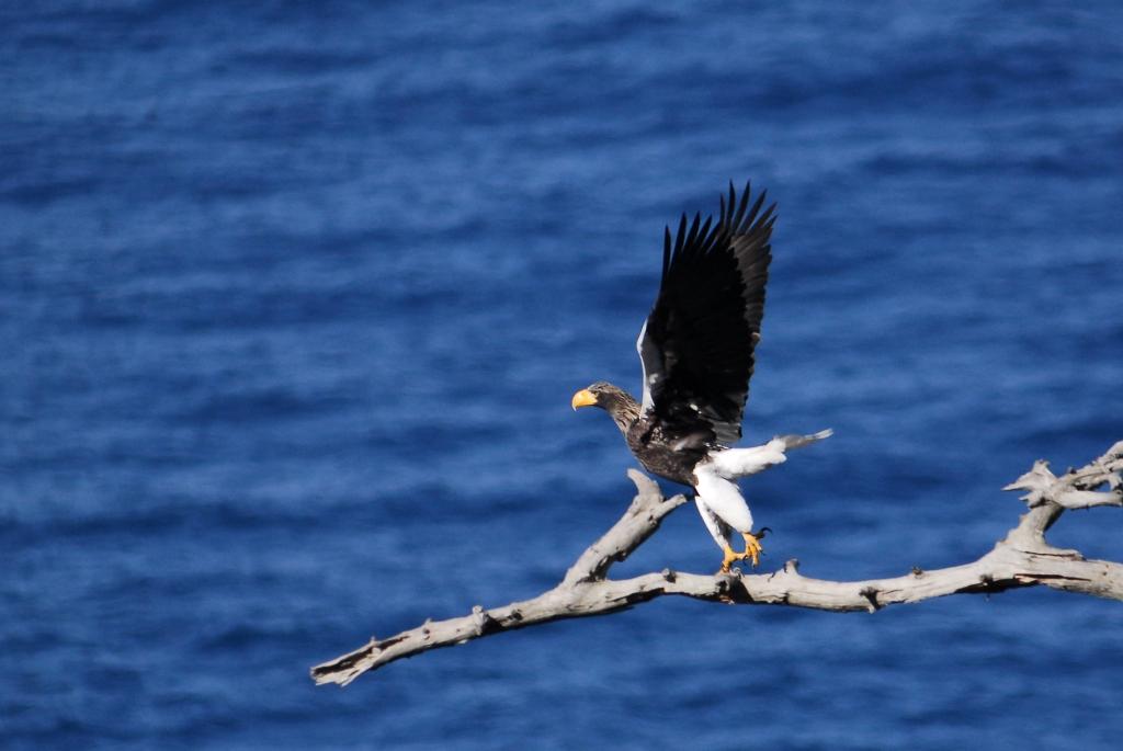 今日は私もオオワシを見に北部を巡回してきました。鰐浦の個体は枯れ松にいましたので、登山してきました。2時間ほど上にいて、下山したとたんに飛び出しました。あと15分粘ってればよかったです。
