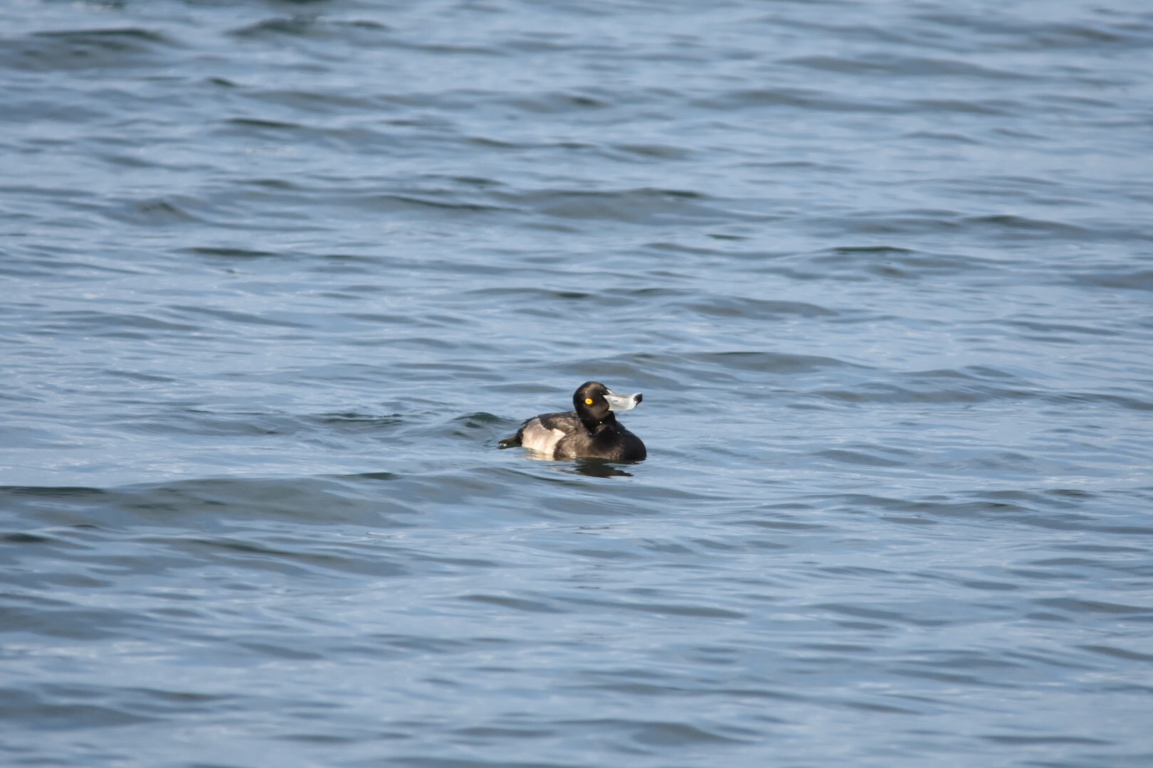 豆酘の港でもハジロが1羽。これも綺麗になってました。