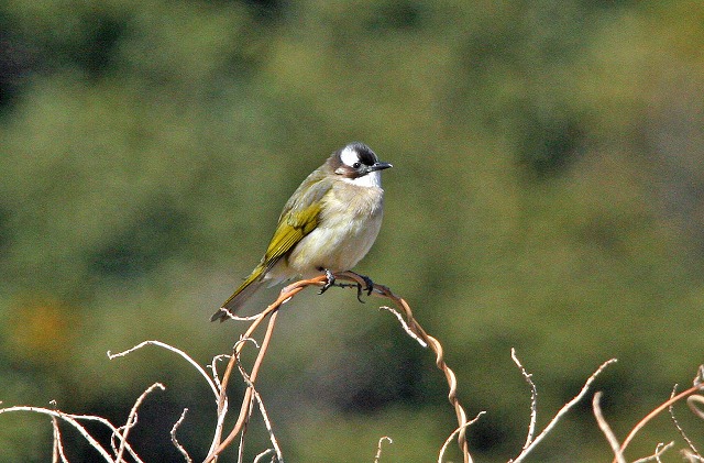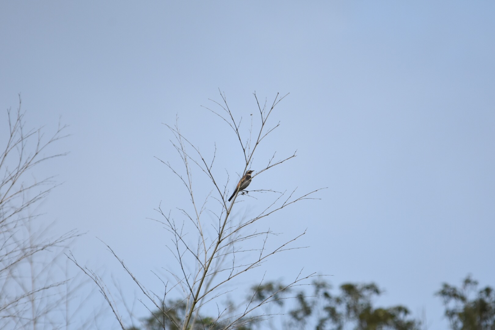 お昼頃小浦の旧道を通っていると築城自動車の近くの茂みの上に思いがけずシロガシラがとまっていました。