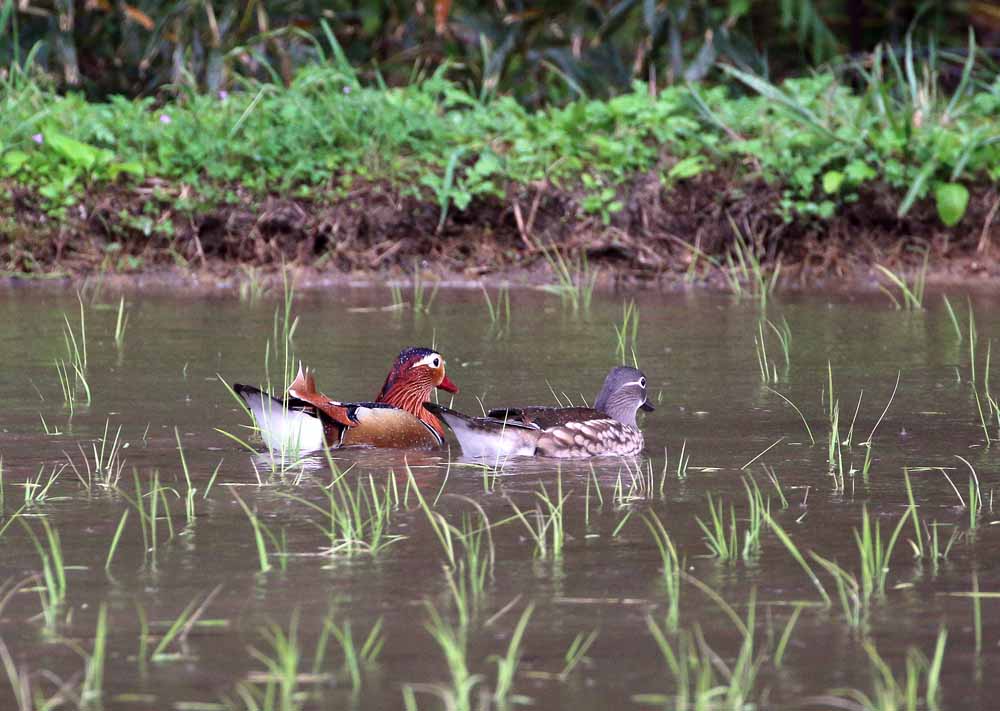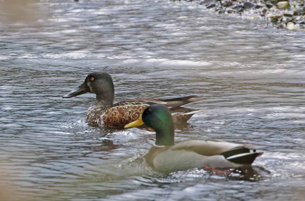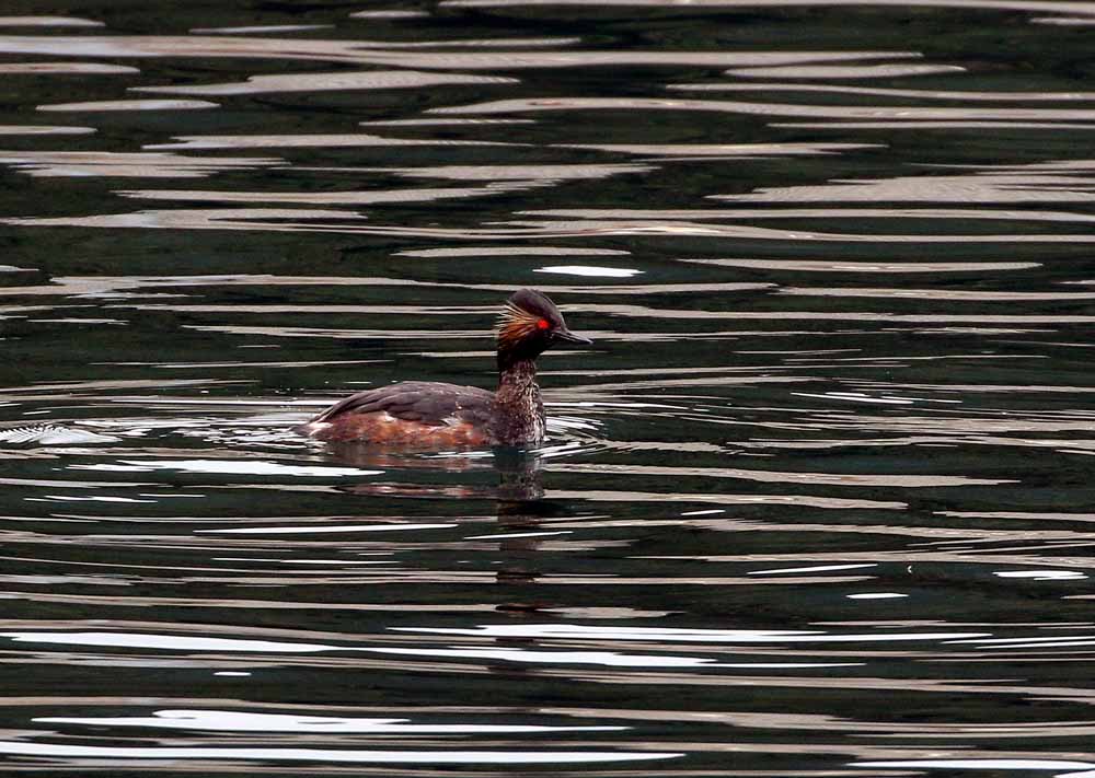 浅藻の港にはハジロカイツブリとカンムリカイツブリが一羽ずついました。