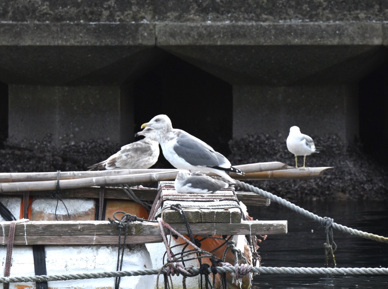 豆酘崎ではカモメが浮遊物を啄ばんでました。