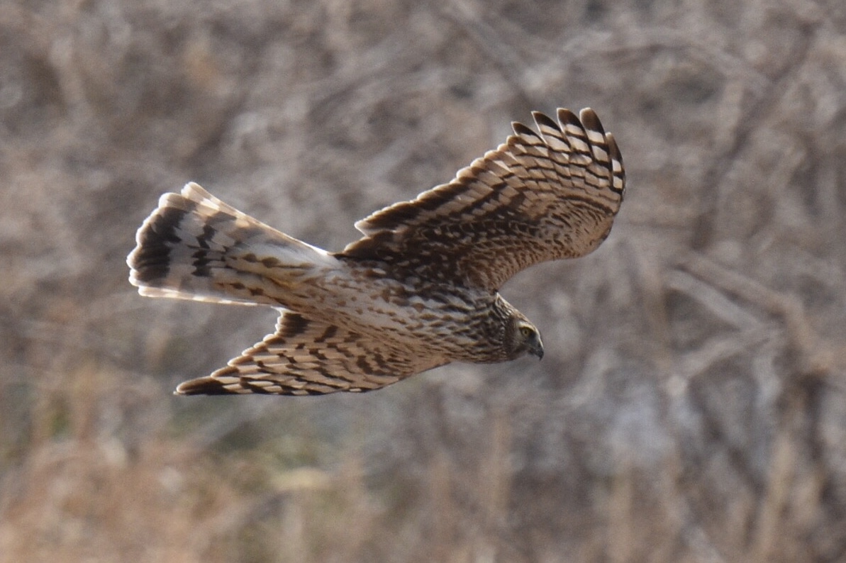 顔の感じや翼の模様からハイイロチュウヒの雌かな・・・