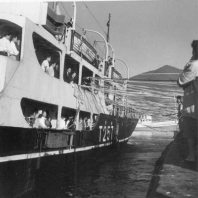 ■ 三浦様 平山様 こんにちは 島を離れてながいですが懐かしくおもっております。私は中学まで鶏知におりました。こっちの掲示板に気がつかずアルバムの方から同じ内容を二重に投稿していましました。ごめんなさい。旧「たいしゅうまる」は小さいながらもフォワードサロンがあり大変眺めがよかったです。船名はどっちでしょうか? 本船は対馬航路を引退した後、下関<>釜山航路に移ったようです。